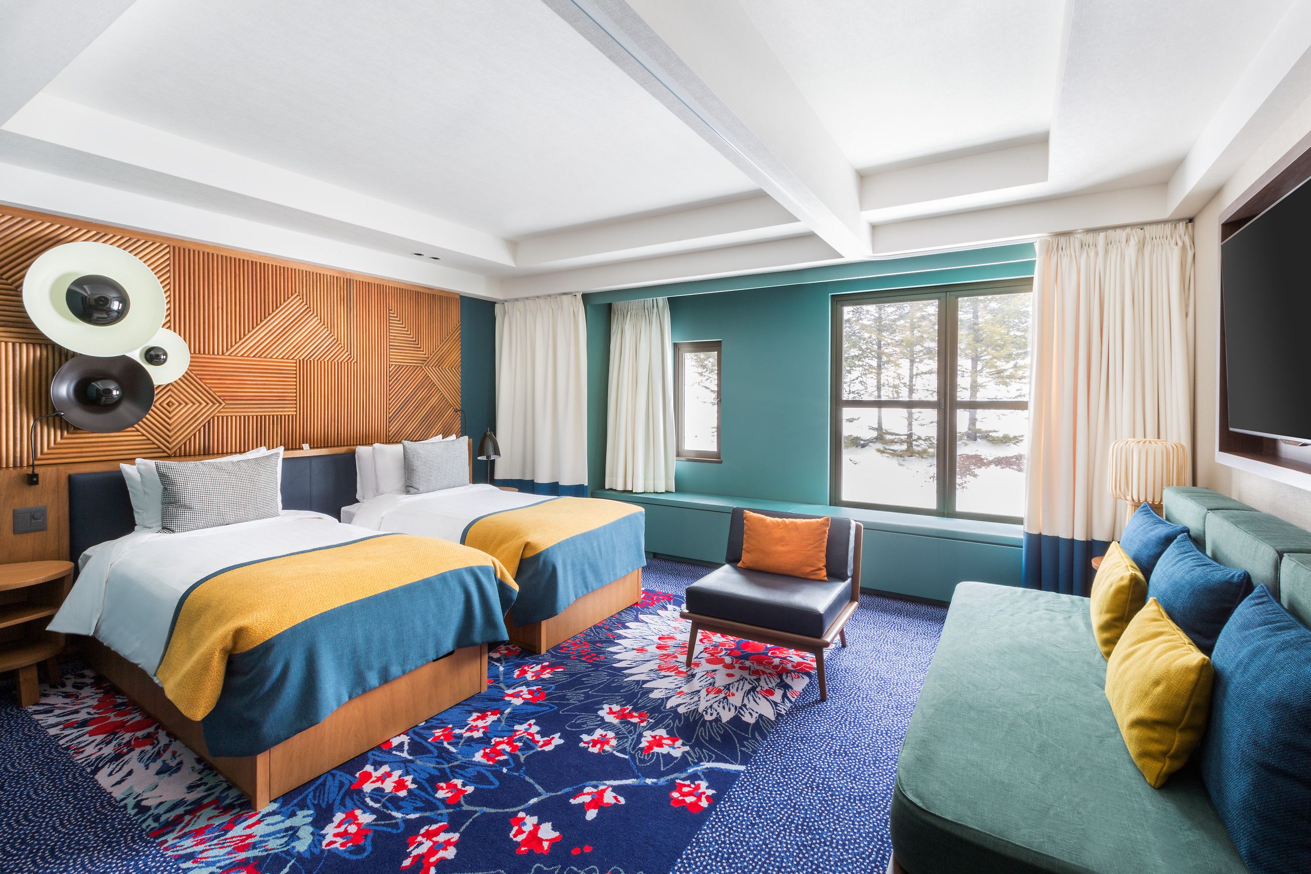 Contemporary interiors reflect Japanese elegance while embracing the surrounding alpine landscape.
