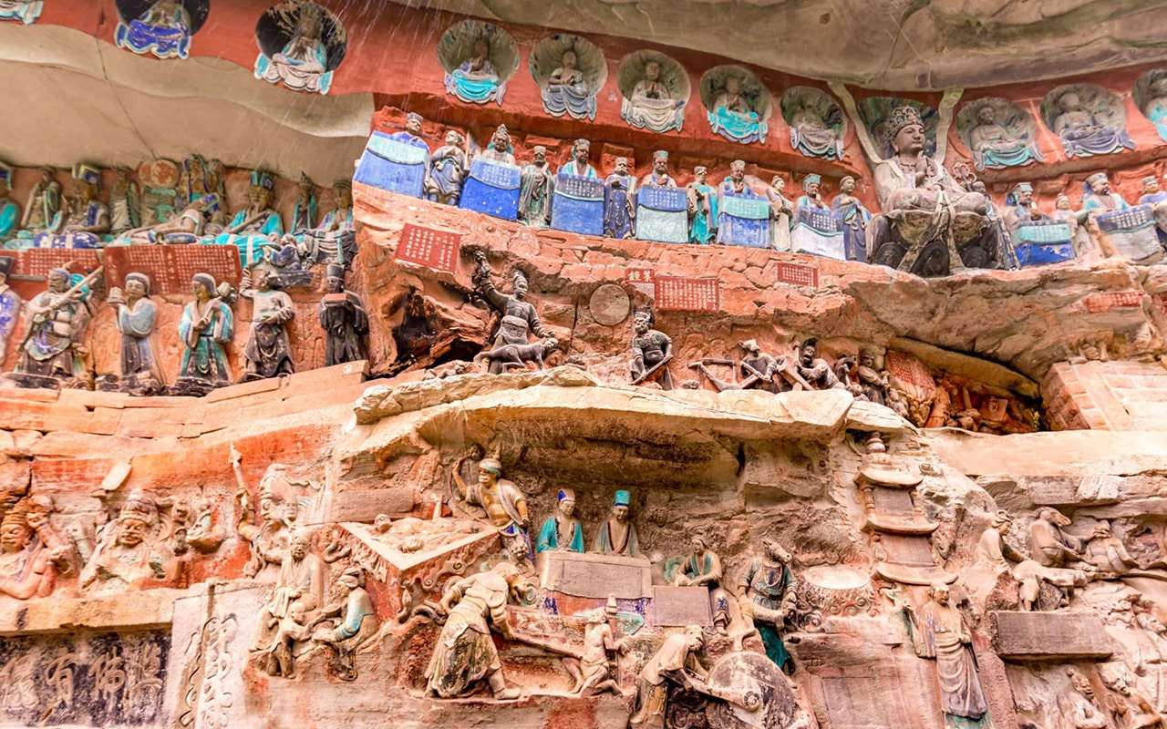 ★Dazu Rock Carvings UNESCO World Heritage Site: Discover the extraordinary Buddhist masterpieces of Dazu, featuring more than 50,000 stone carvings depicting compassion, reincarnation, and enlightenment. Key highlights include the Thousand-Hand Guanyin, Six Realms of Rebirth, and Oxherding Pictures — artistic treasures that represent the fusion of Buddhism, Taoism, and Confucianism during the Southern Song Dynasty.