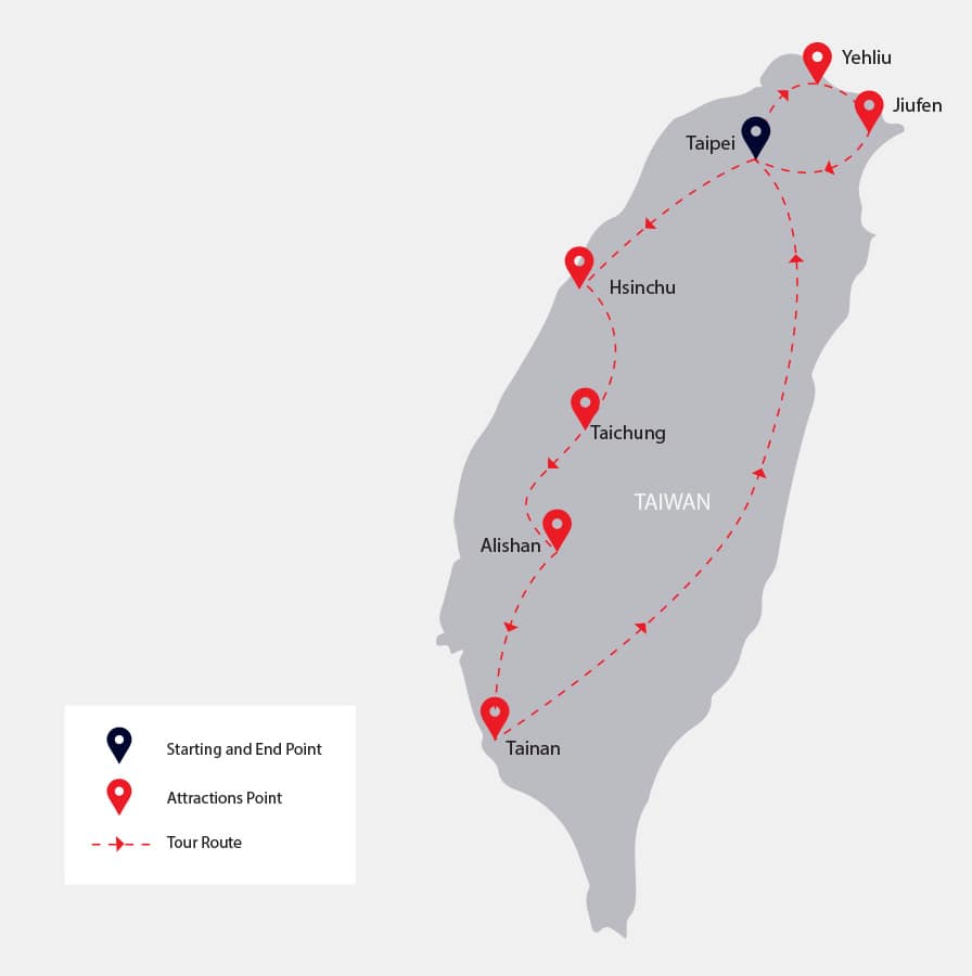 Arrive in Taipei, where a tour representative will transfer you to your hotel for check-in. Spend the afternoon at your leisure exploring Taipei.